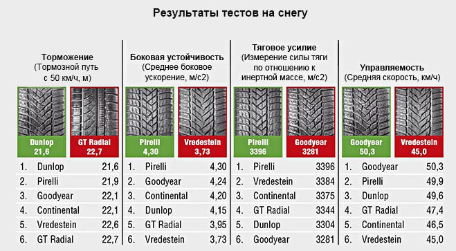 + Первое место в испытаниях тормозных свойств на заснеженной дороге.
